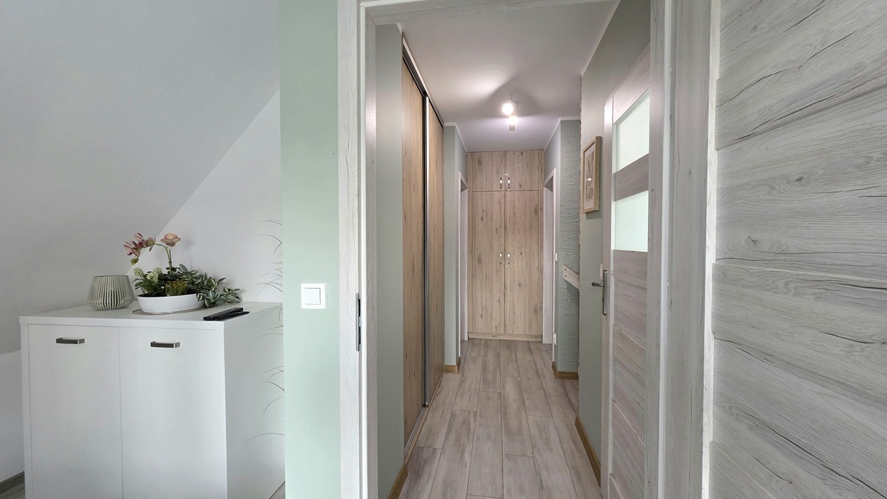 - W przedpokoju mieści się duża garderoba, w której to pomieści się większość rzeczy. Dodatkowo jest jeszcze duża szafa w zabudowie.